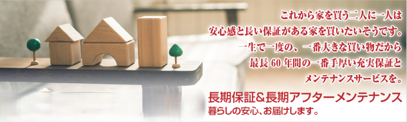 lifeassist60 ミーツホームの新築住宅は60年保証! これから家を買う二人に一人は安心感と長い保証がある家を買いたいそうです。一生で一度の、一番大きな買い物だから最長60年間の一番手厚い充実保証とメンテナンスサービスを。長期保証&長期アフターメンテナンス、暮らしの安心、お届けします。 PDFを開く 一覧に戻る